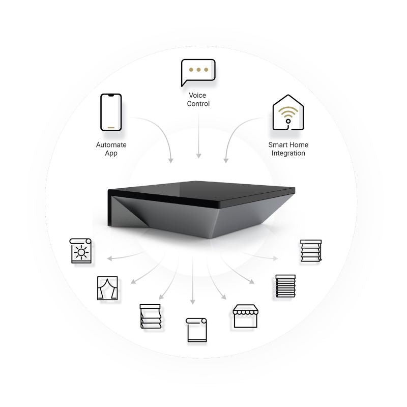 The foundation for automating your motorised shades — delivering robust performance with a long-range signal (up to ~30 m) and whole-home coverage without additional hubs.